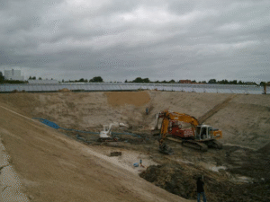 Besonderheit:Pilotspeicher für moderne, wassergefüllte Erdbecken-Wärmespeicher